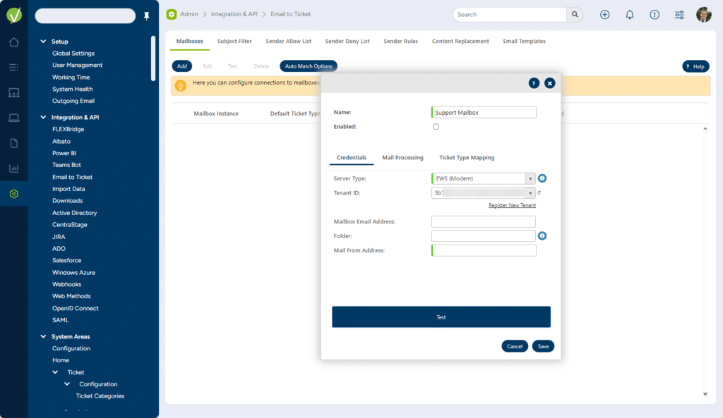 You can create a Email to Ticket connection between Vivantio and multiple Office 365 mailboxes. Once connected Vivantio will process emails that arrive in the mailbox and either create new tickets or update existing tickets.